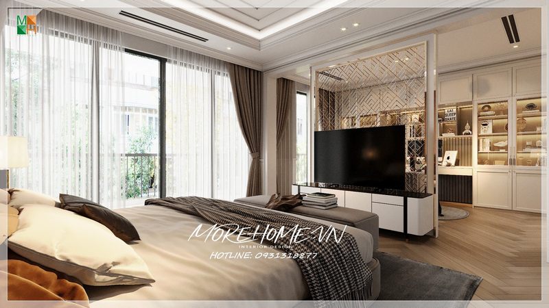 Kệ tivi cũng là một thiết kế nội thất tạo nên độ sang trọng và tiện nghi cho căn phòng ngủ trở nên tinh tế hơn bao giờ hết.